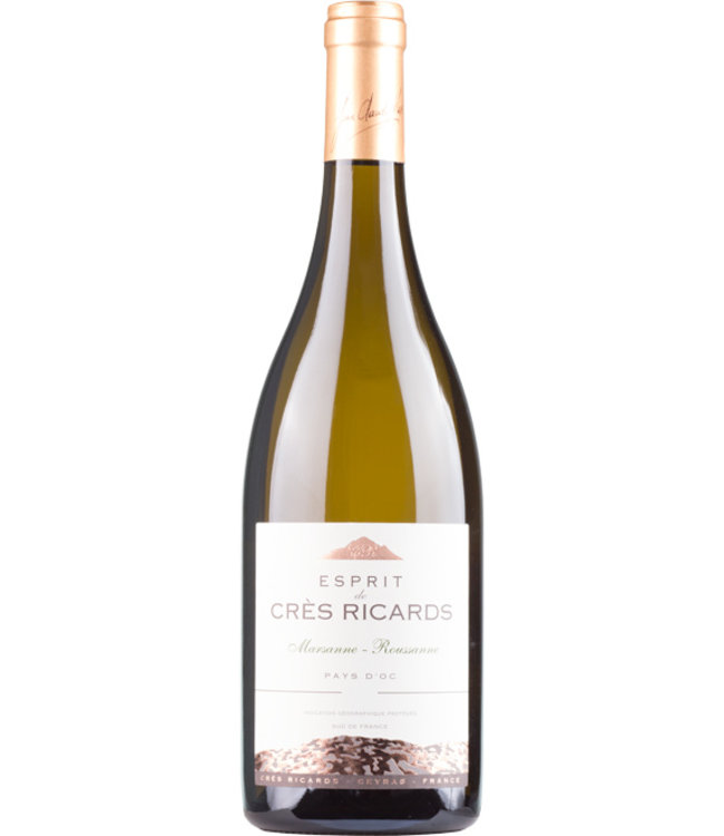 De druiven voor de Marsanne Rousanne worden zowel handmatig als mechanisch in het holst van de nacht geplukt om oxidatie te voorkomen. 15% van deze wijn heeft rijping in Franse eiken houten vaten, de overige 85% in roestvrijstalen vaten. Deze combinatie van 70% Marsanne en 30% Rousanne zorgt voor een heerlijk rijke en frisse wijn met tinten van passievrucht, witte bloemen en kamperfoelie. In de fantastische langdurende afdronk komt een vleugje vanille en abrikoos naar voren. Deze Esprit de Crès Ricards Marsanne/Rousanne is heerlijk zowel vóór als tijdens het eten en gaat zeer goed samen met bijvoorbeeld visgerechten, kip, salade en blauwe kazen.
